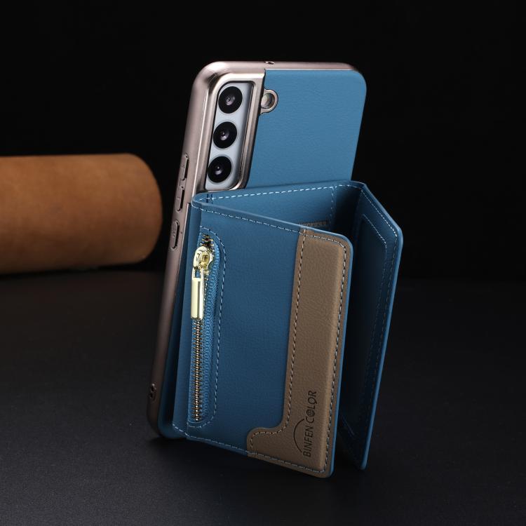 For Samsung Galaxy S21+ 5G Zipper Horizontal Magnetic Card Bag RFID MagSafe Phone Case(Baby Blue)