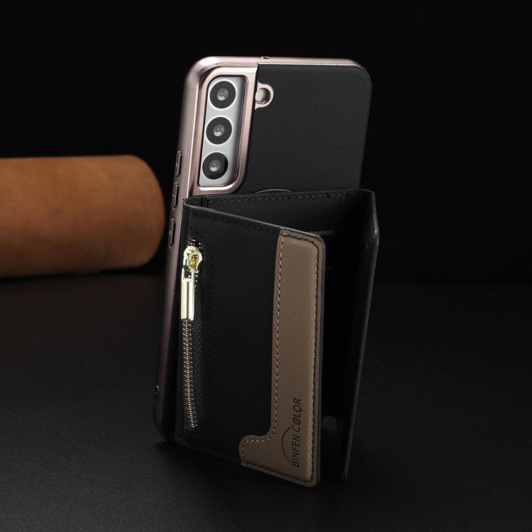 For Samsung Galaxy S21+ 5G Zipper Horizontal Magnetic Card Bag RFID MagSafe Phone Case(Black)