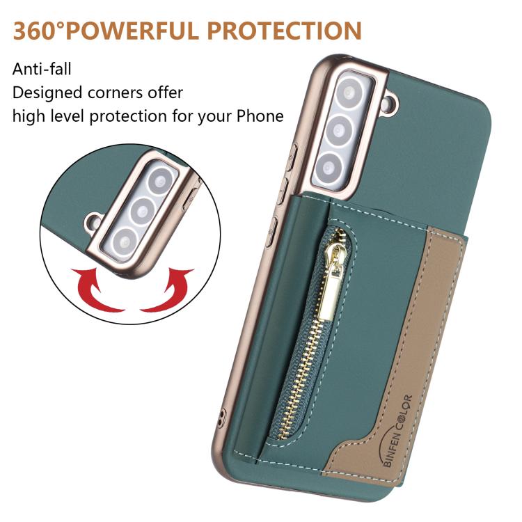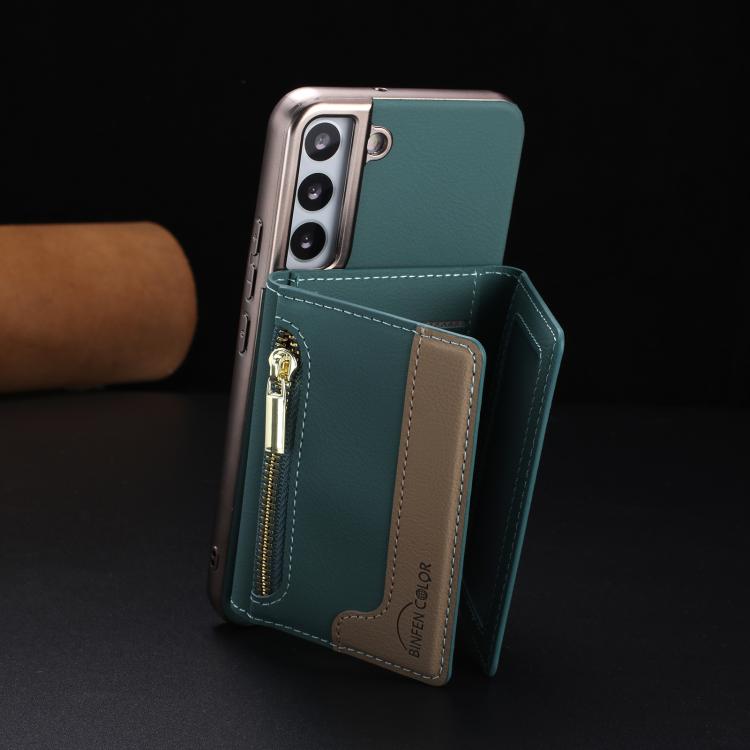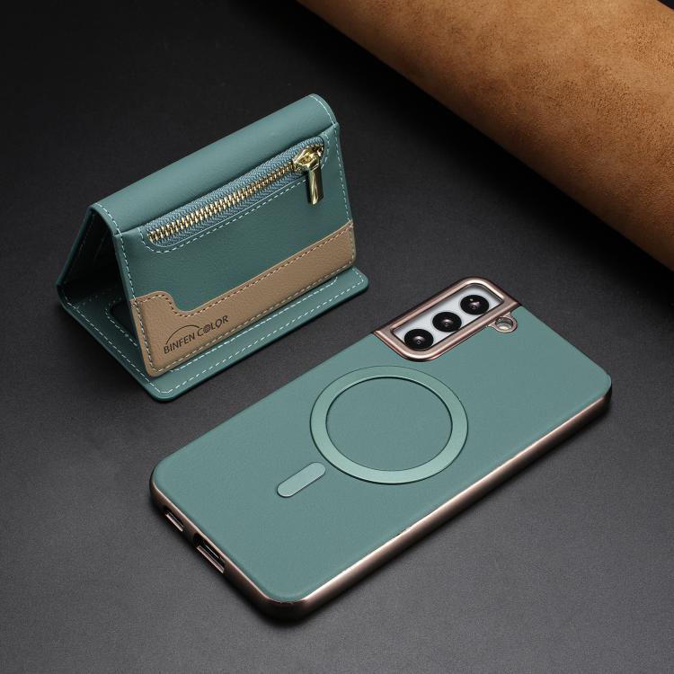 For Samsung Galaxy S21+ 5G Zipper Horizontal Magnetic Card Bag RFID MagSafe Phone Case(Green)
