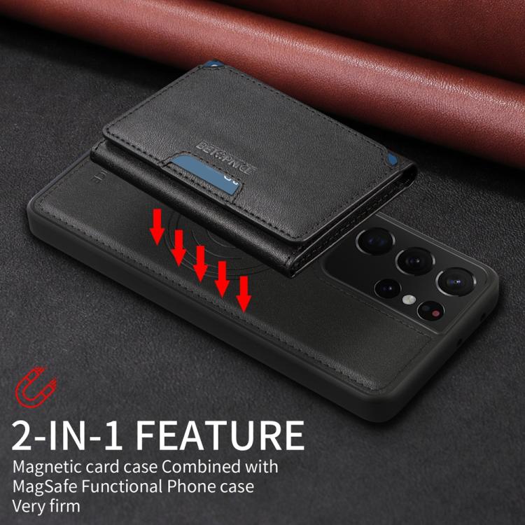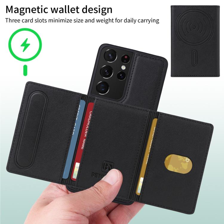 For Samsung Galaxy S21 Ultra 5G BETOPNICE Horizontal Flip Detachable MagSafe Wallet Phone Case(Black)