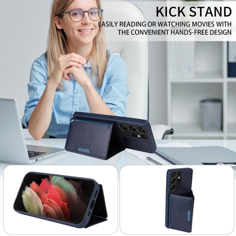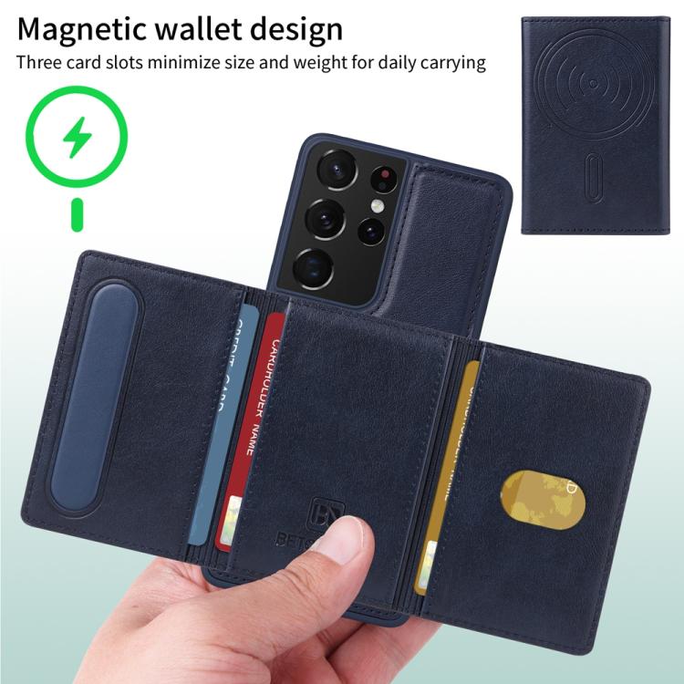 For Samsung Galaxy S21 Ultra 5G BETOPNICE Horizontal Flip Detachable MagSafe Wallet Phone Case(Blue)
