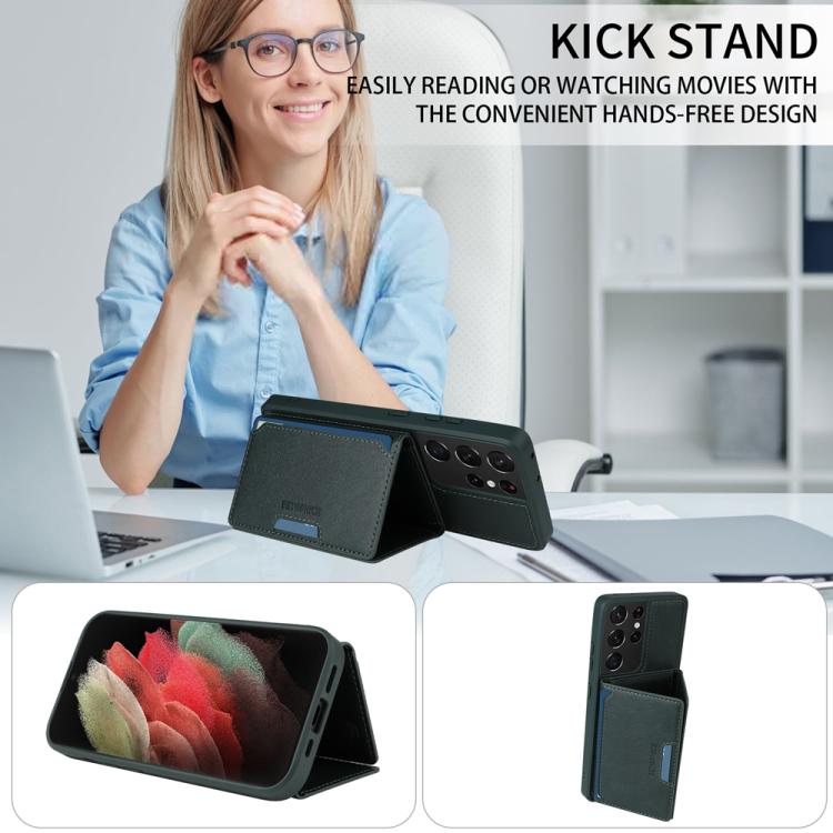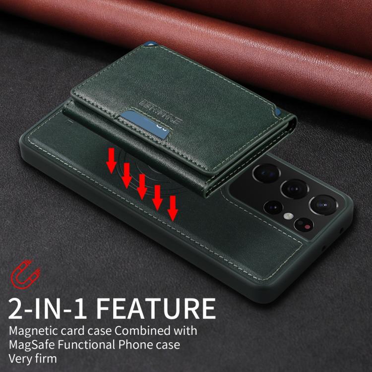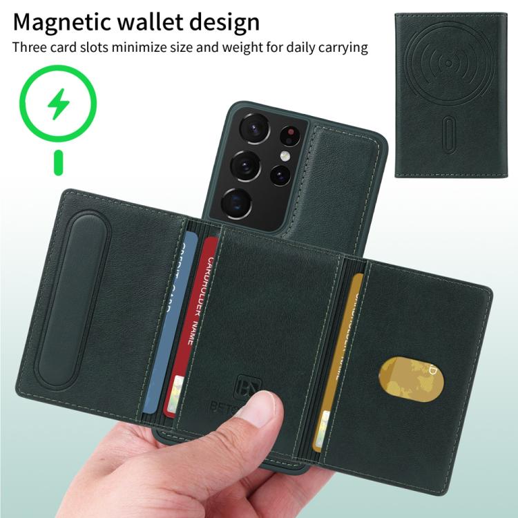 For Samsung Galaxy S21 Ultra 5G BETOPNICE Horizontal Flip Detachable MagSafe Wallet Phone Case(Green)