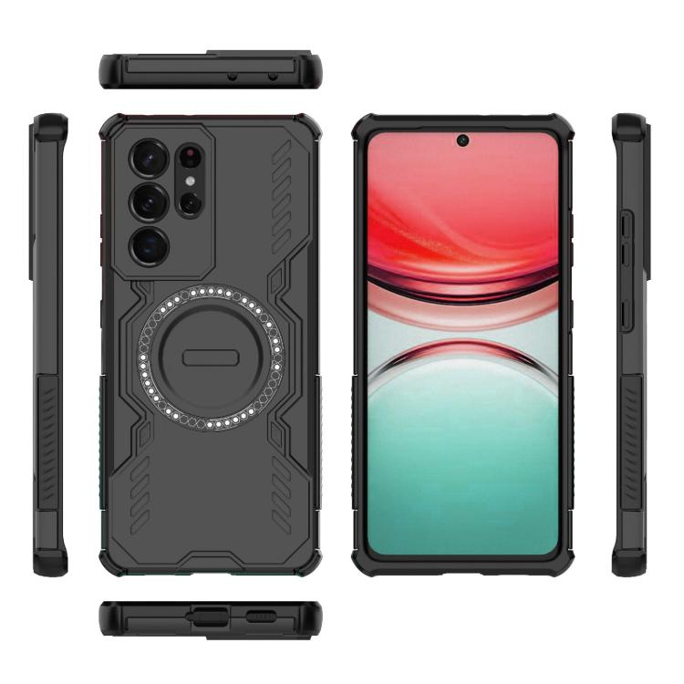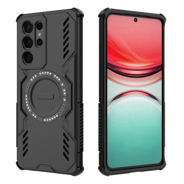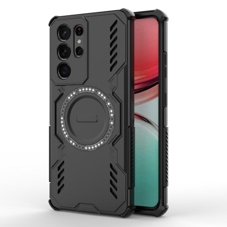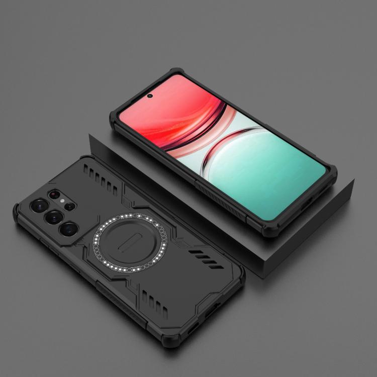 For Samsung Galaxy S21 Ultra 5G Butterfly Armor MagSafe Magnetic Ring Shockproof Phone Case(Black)