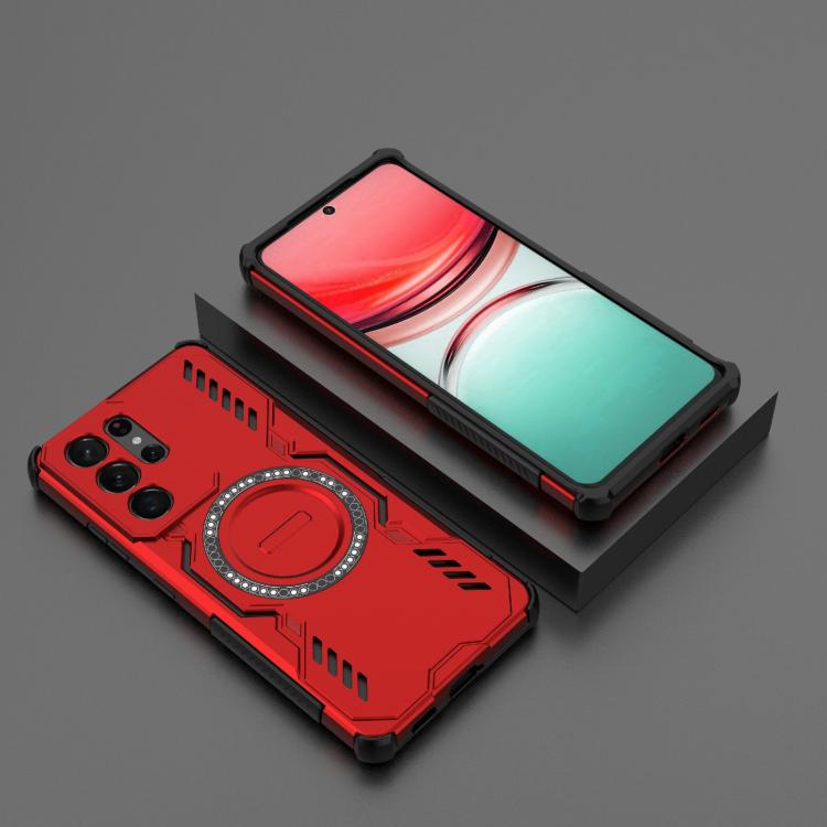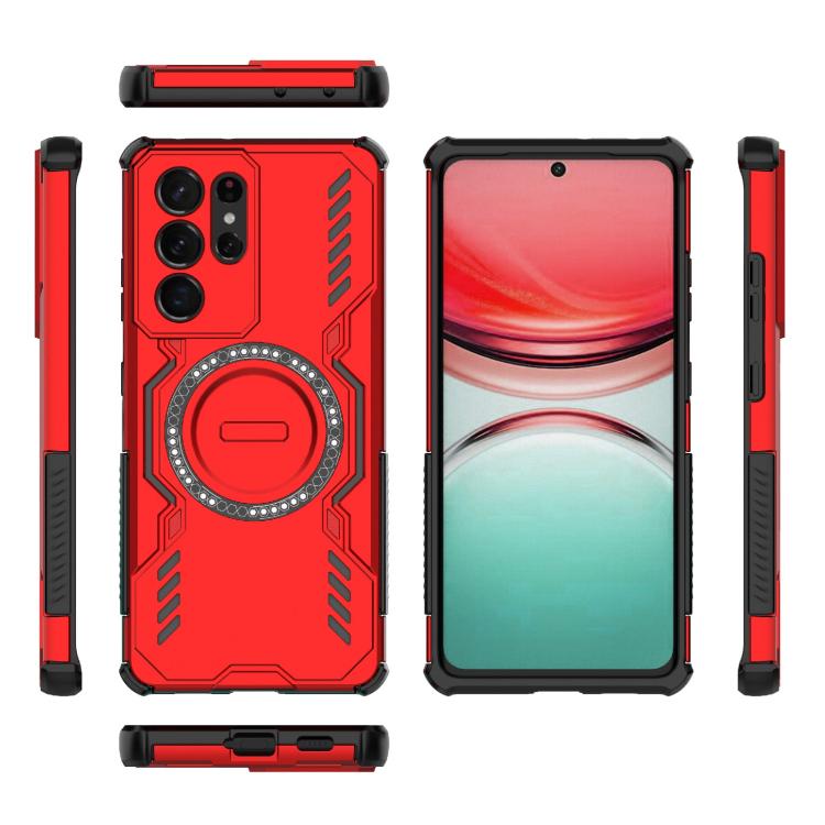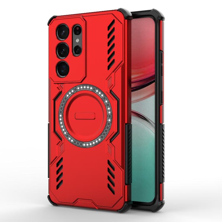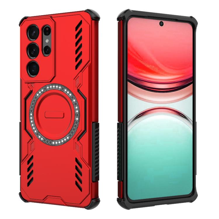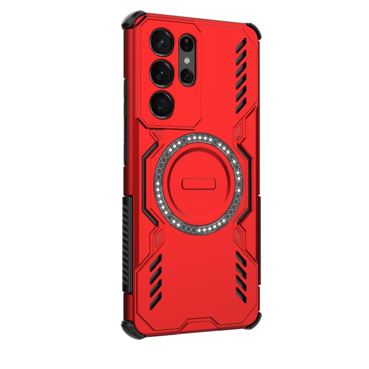 For Samsung Galaxy S21 Ultra 5G Butterfly Armor MagSafe Magnetic Ring Shockproof Phone Case(Red)