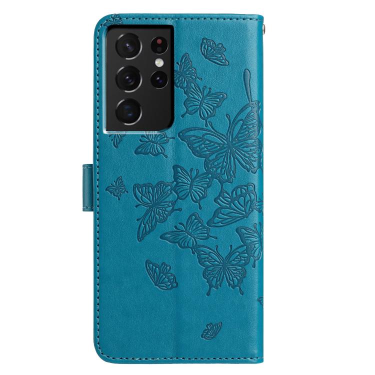 For Samsung Galaxy S21 Ultra 5G Butterfly Flutter Pattern Embossed Leather Phone Case(Blue)