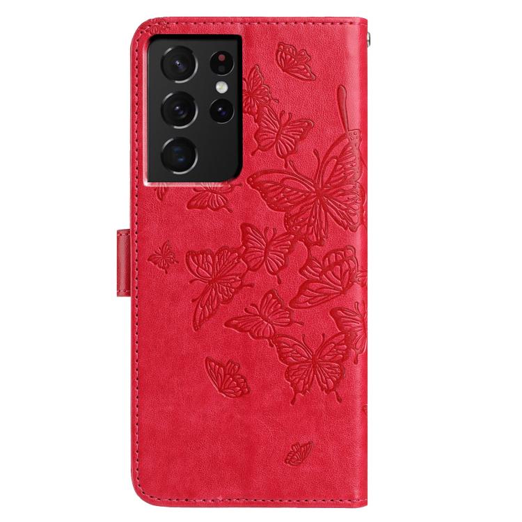 For Samsung Galaxy S21 Ultra 5G Butterfly Flutter Pattern Embossed Leather Phone Case(Red)