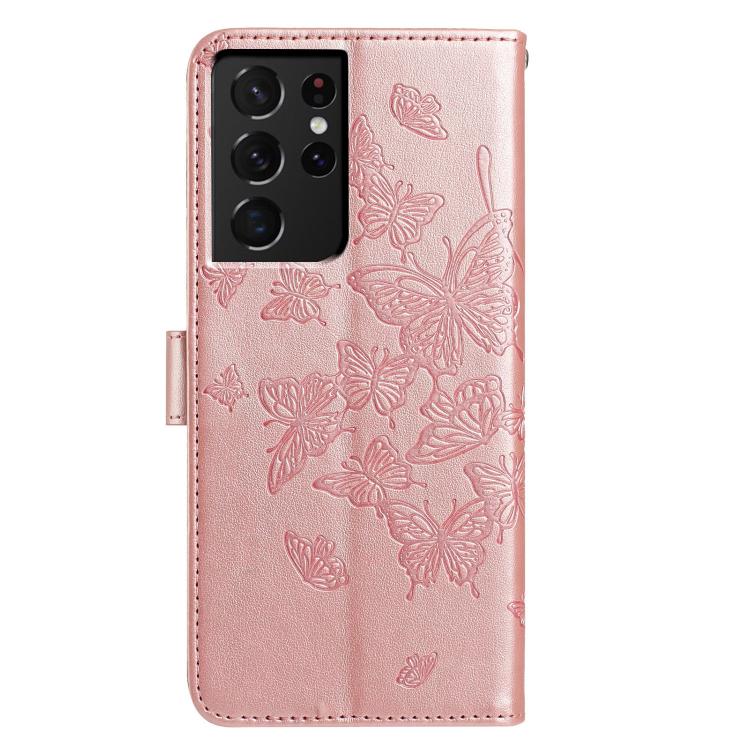 For Samsung Galaxy S21 Ultra 5G Butterfly Flutter Pattern Embossed Leather Phone Case(Rose Gold)