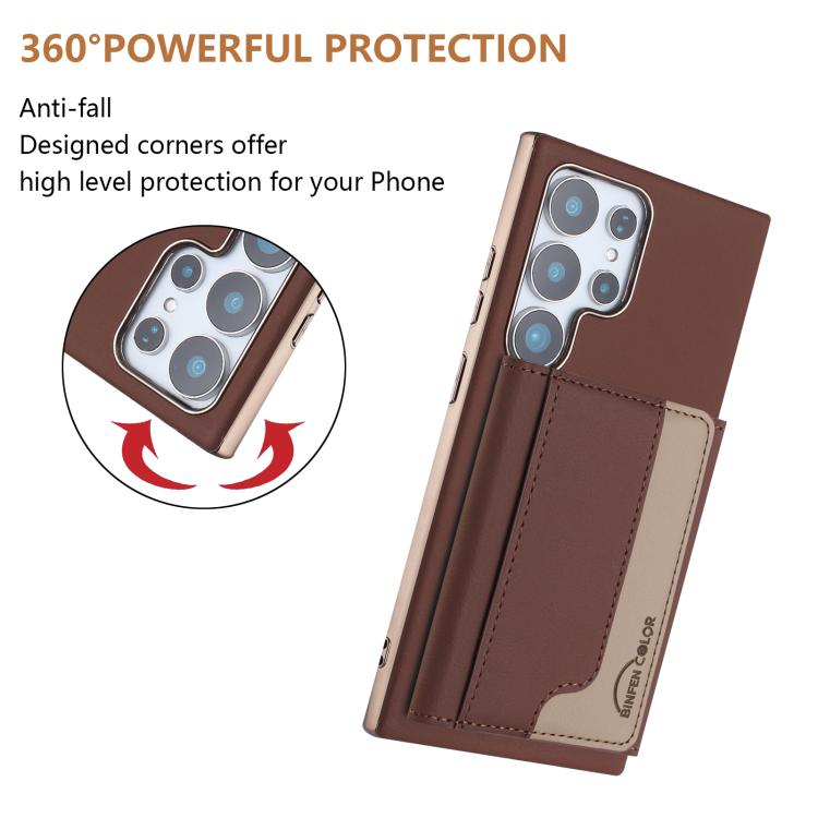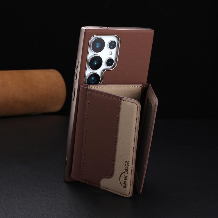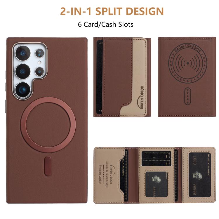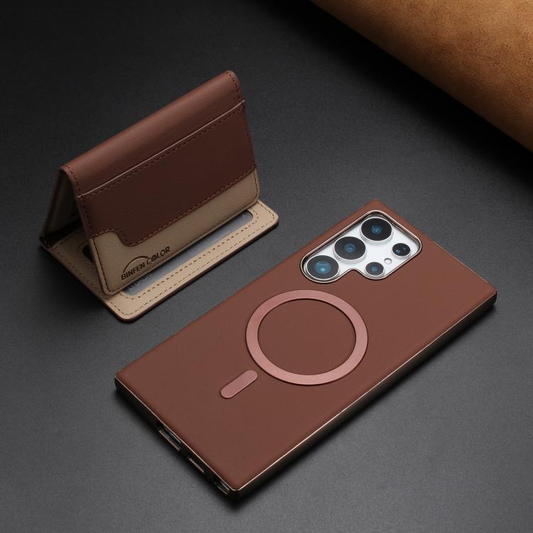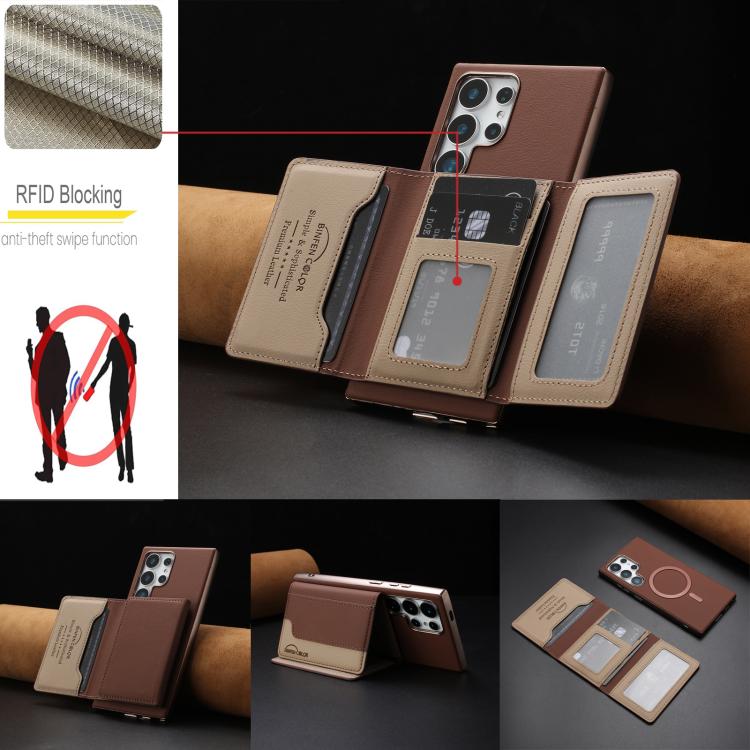 For Samsung Galaxy S21 Ultra 5G Colour Matching Horizontal Magnetic Card Bag RFID MagSafe Phone Case(Brown)