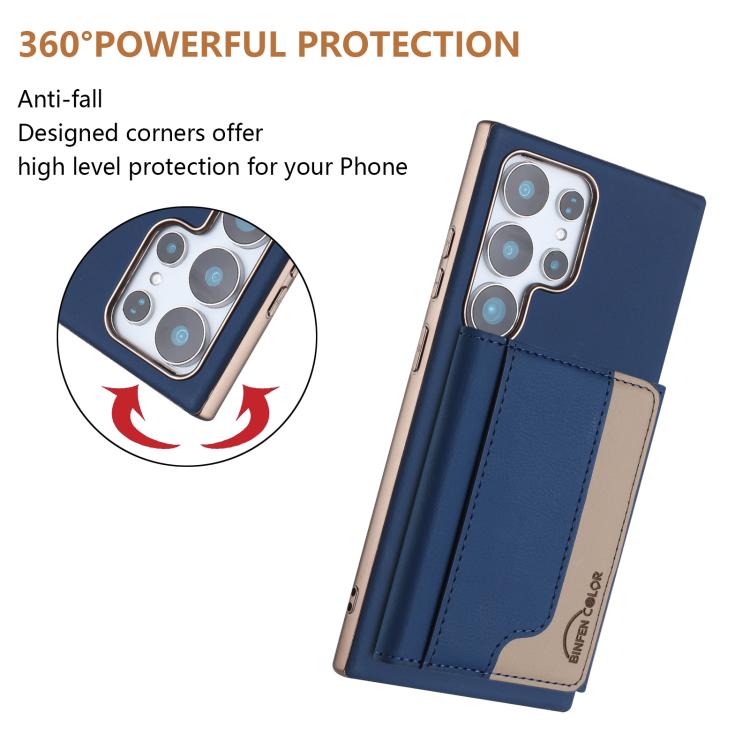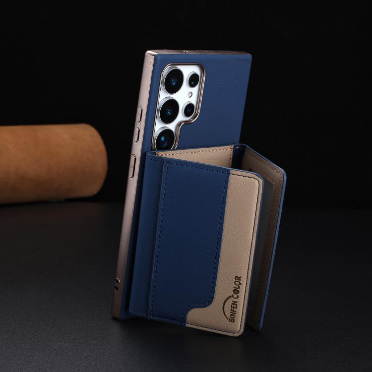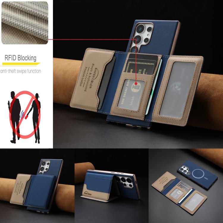 For Samsung Galaxy S21 Ultra 5G Colour Matching Horizontal Magnetic Card Bag RFID MagSafe Phone Case(Dark Blue)