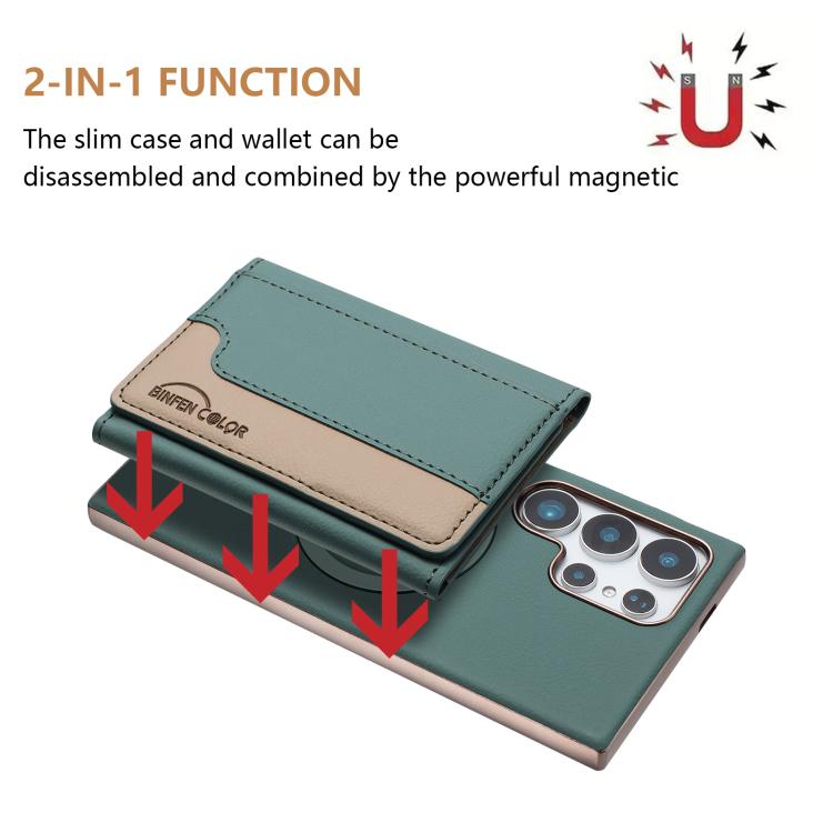 For Samsung Galaxy S21 Ultra 5G Colour Matching Horizontal Magnetic Card Bag RFID MagSafe Phone Case(Green)