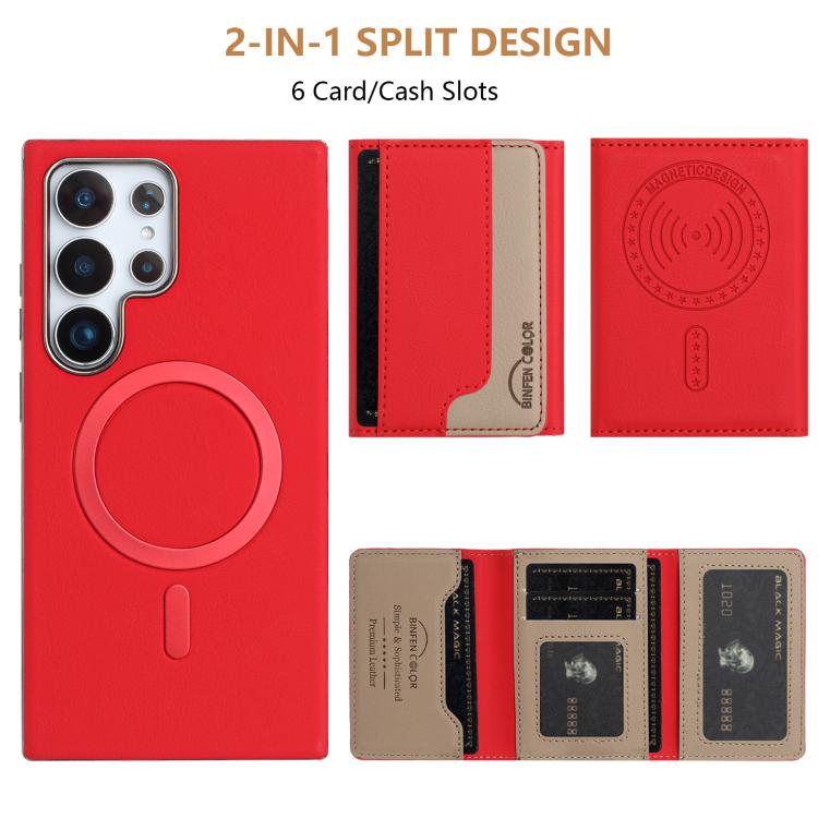 For Samsung Galaxy S21 Ultra 5G Colour Matching Horizontal Magnetic Card Bag RFID MagSafe Phone Case(Red)