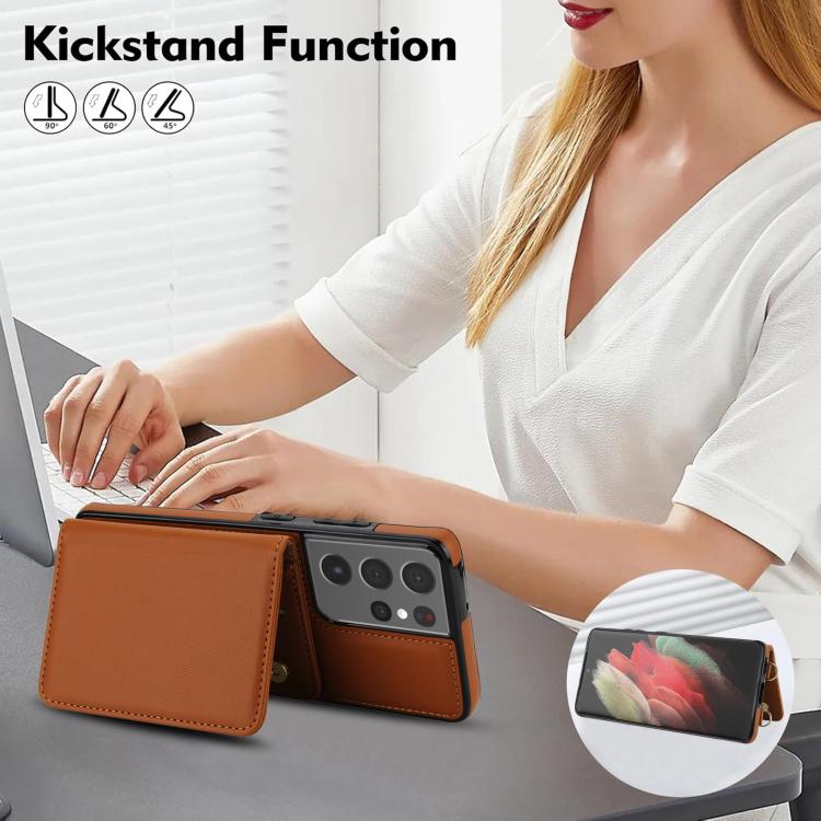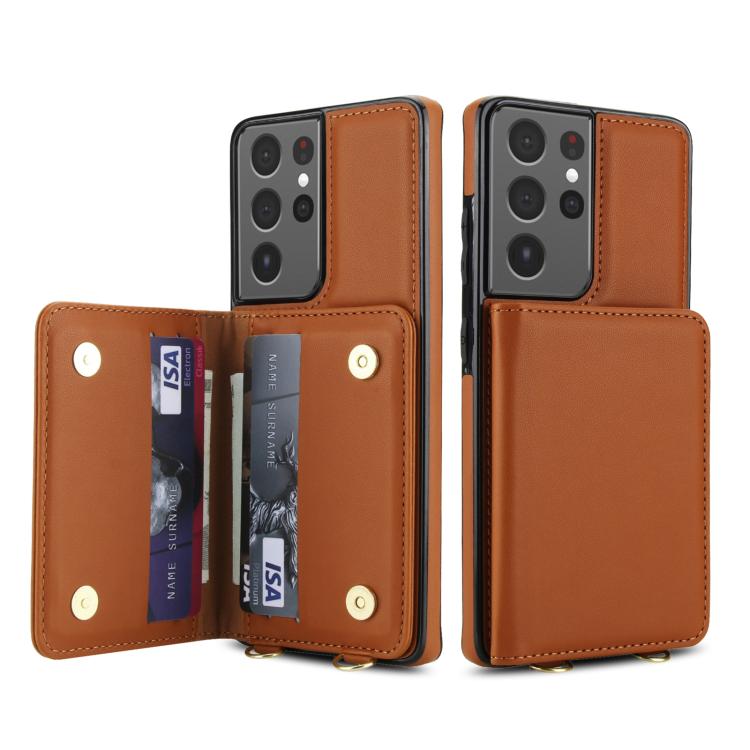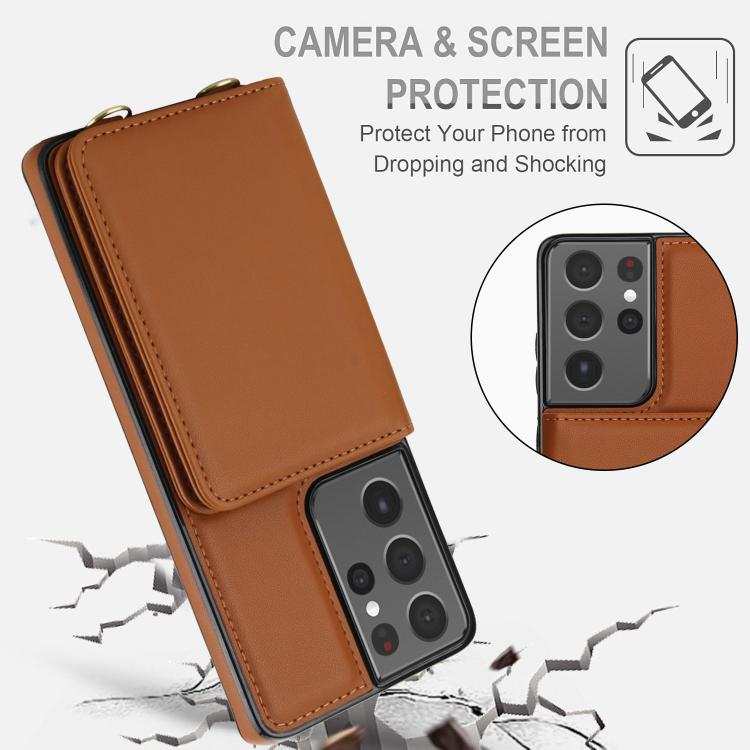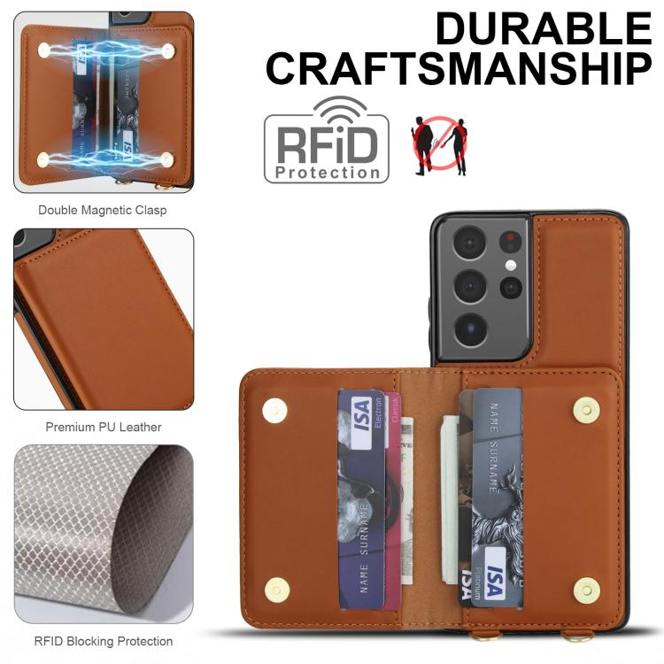 For Samsung Galaxy S21 Ultra 5G Crossbody Dual-buckle Wallet RFID Back Leather Phone Case(Brown)
