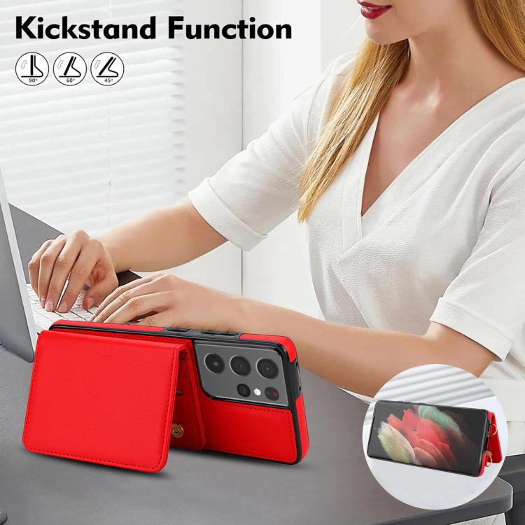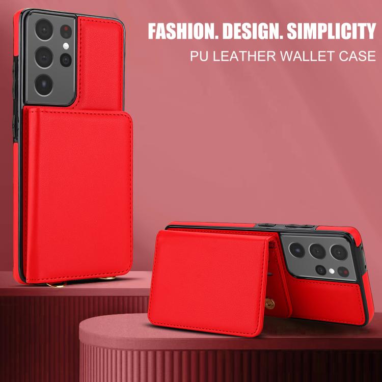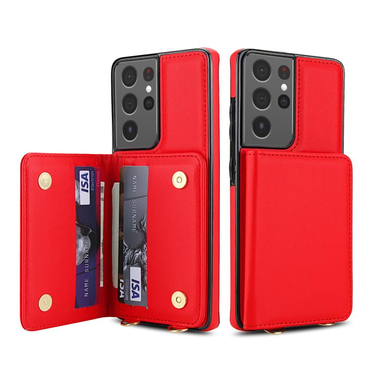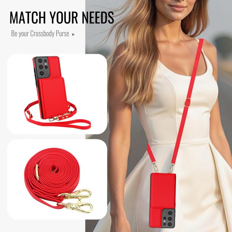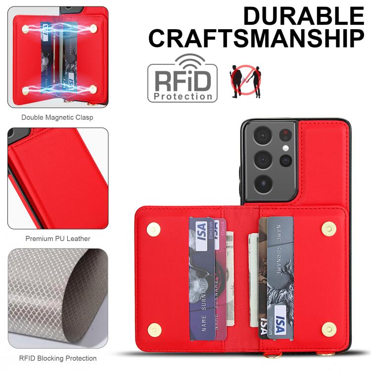 For Samsung Galaxy S21 Ultra 5G Crossbody Dual-buckle Wallet RFID Back Leather Phone Case(Red)