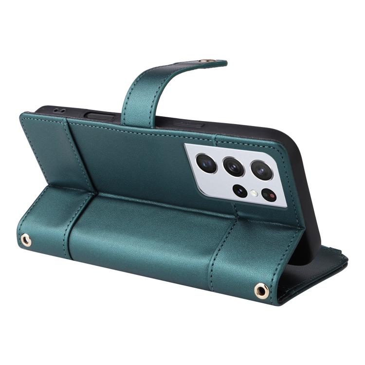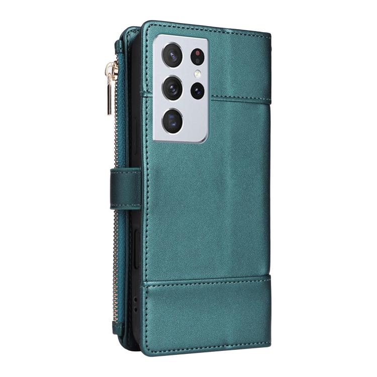 For Samsung Galaxy S21 Ultra 5G Crossbody Strap RFID Blocking Zipper Wallet Leather Phone Case(Green)