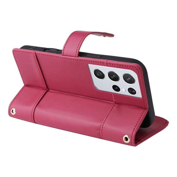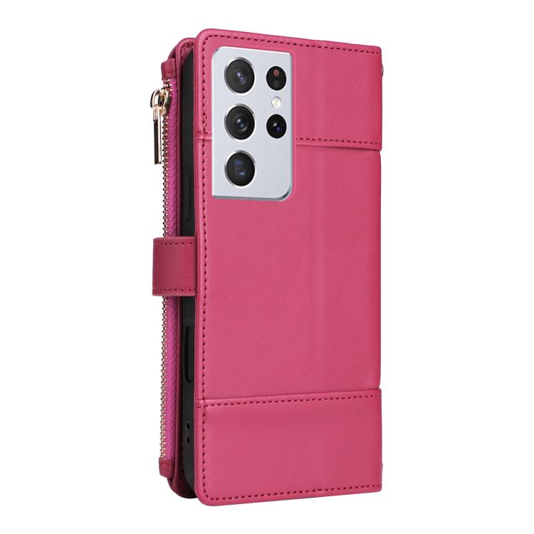For Samsung Galaxy S21 Ultra 5G Crossbody Strap RFID Blocking Zipper Wallet Leather Phone Case(Red)