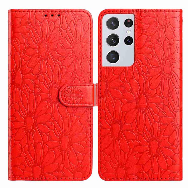 For Samsung Galaxy S21 Ultra 5G Daisy Embossed Leather Phone Case(Red)
