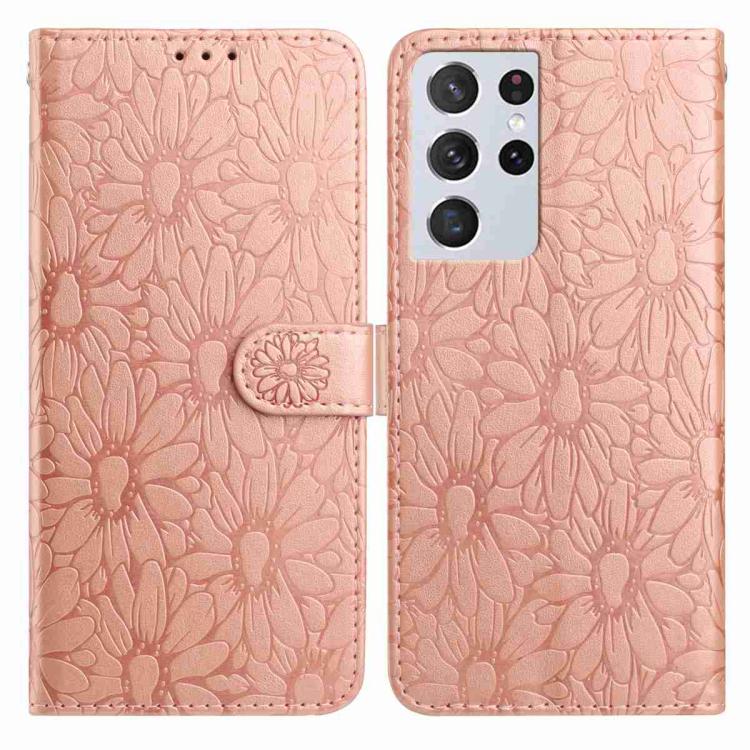 For Samsung Galaxy S21 Ultra 5G Daisy Embossed Leather Phone Case(Rose Gold)