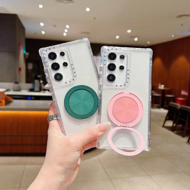 For Samsung Galaxy S21 Ultra 5G Dreamland Transparent MagSafe Holder Phone Case(Pink)