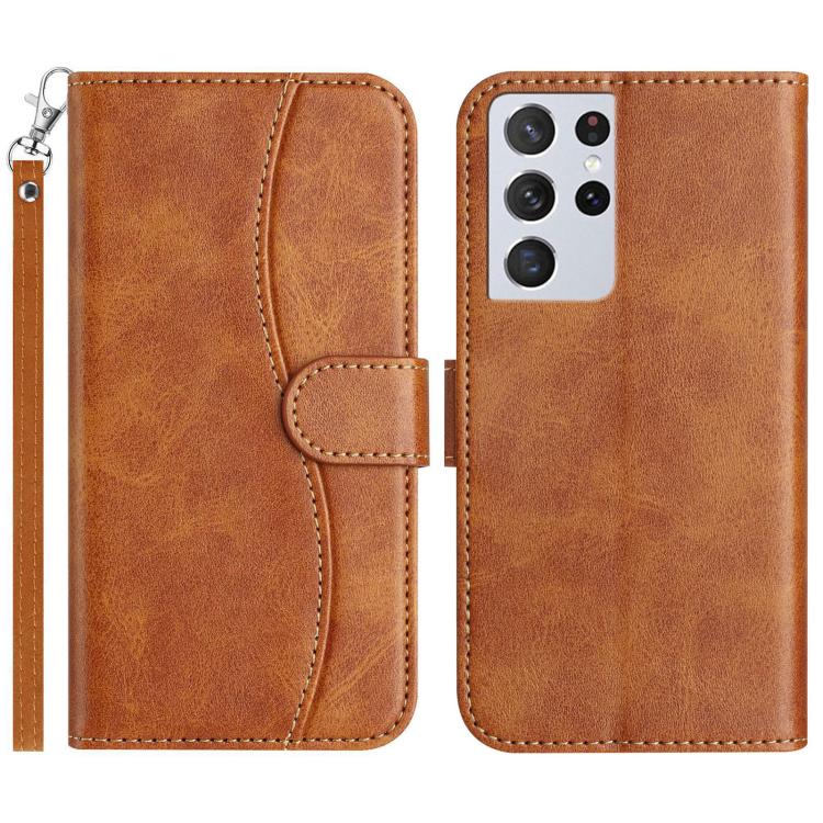 For Samsung Galaxy S21 Ultra 5G Dual-Folded S-shape Leather Phone Case(Brown)