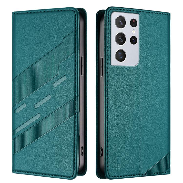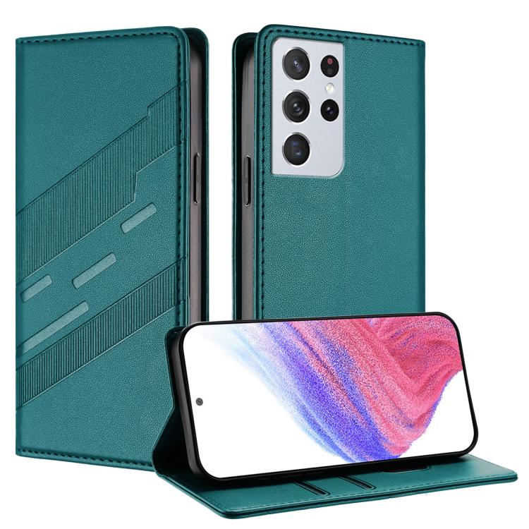 For Samsung Galaxy S21 Ultra 5G Embossed Multi-functional Wallet Retro Leather Phone Case(Dark Green)