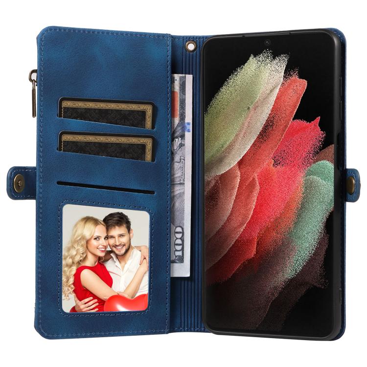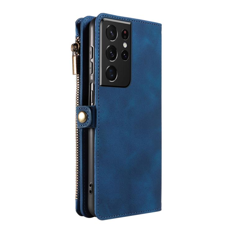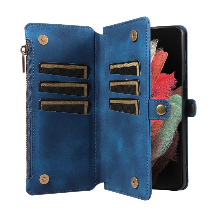 For Samsung Galaxy S21 Ultra 5G Fantasy Multifunctional Zipper Wallet Leather Phone Case(Blue)