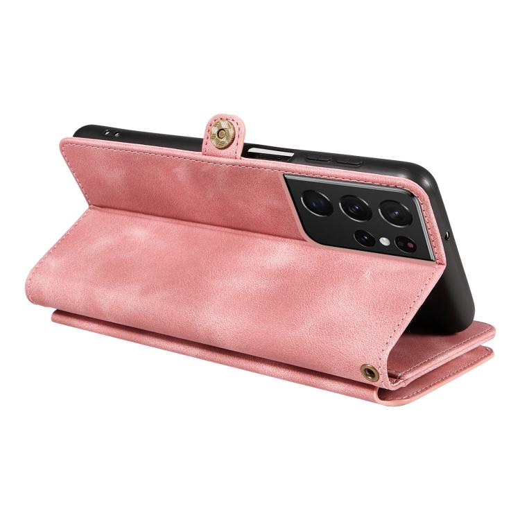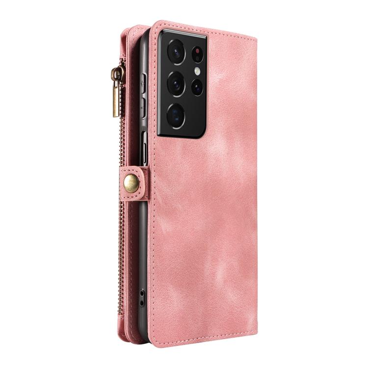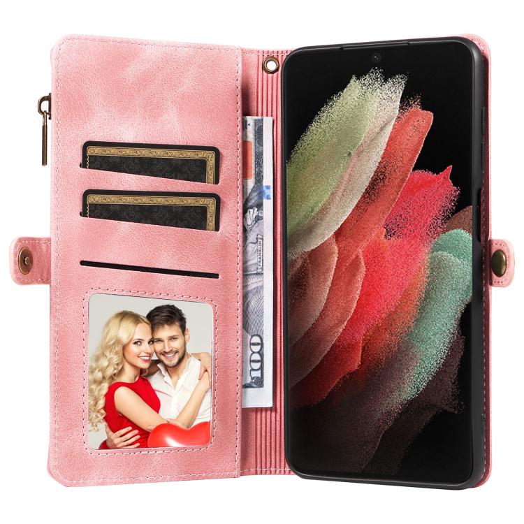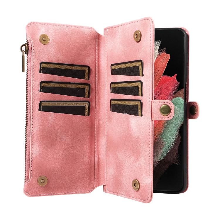 For Samsung Galaxy S21 Ultra 5G Fantasy Multifunctional Zipper Wallet Leather Phone Case(Pink)