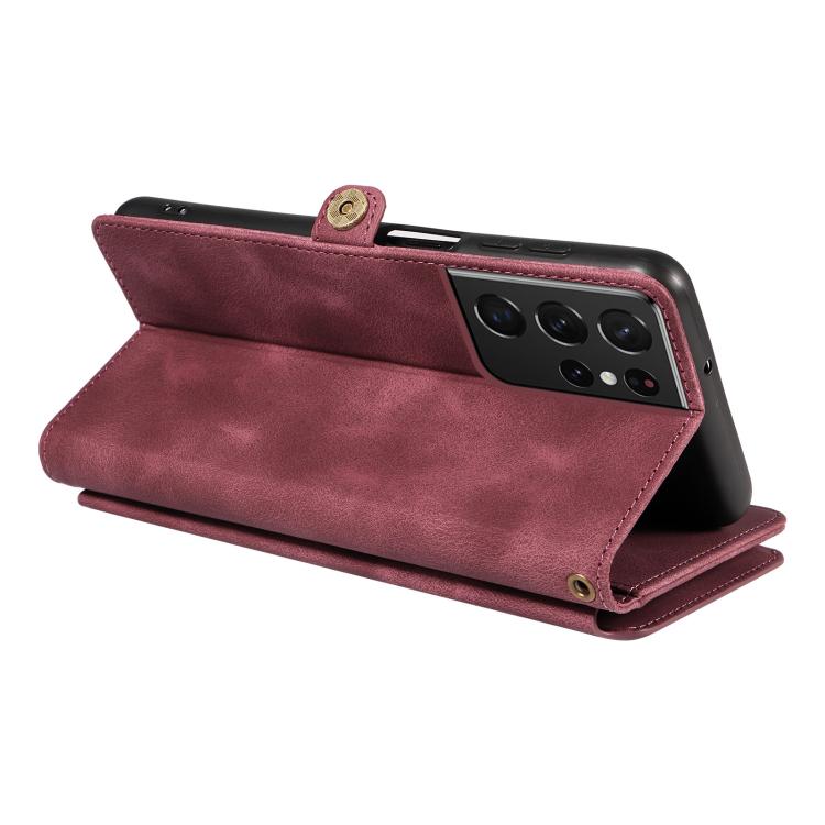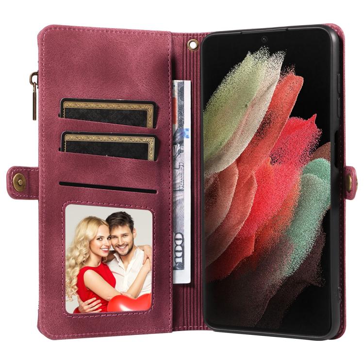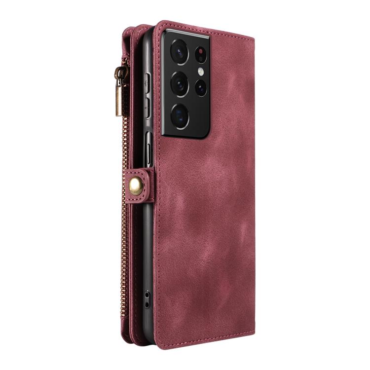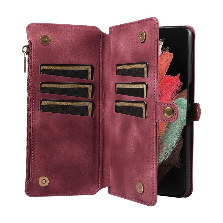 For Samsung Galaxy S21 Ultra 5G Fantasy Multifunctional Zipper Wallet Leather Phone Case(Red)