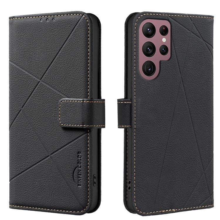 For Samsung Galaxy S21 Ultra 5G Geometric Pattern RFID Leather Phone Case(Black)