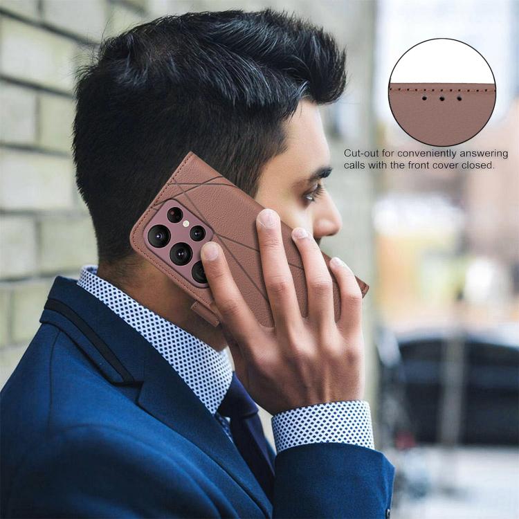 For Samsung Galaxy S21 Ultra 5G Geometric Pattern RFID Leather Phone Case(Brown)