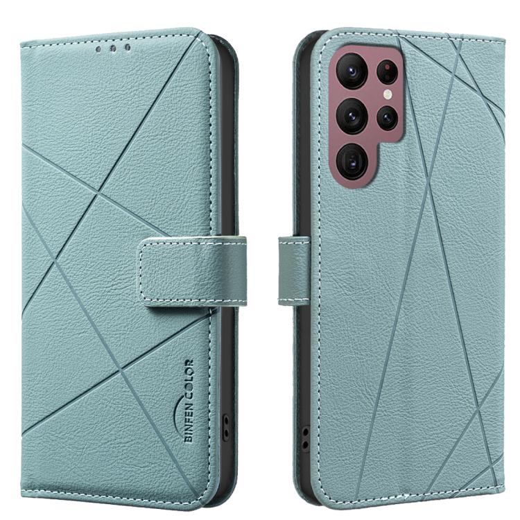 For Samsung Galaxy S21 Ultra 5G Geometric Pattern RFID Leather Phone Case(Green)
