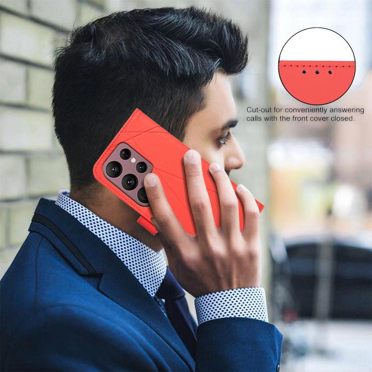 For Samsung Galaxy S21 Ultra 5G Geometric Pattern RFID Leather Phone Case(Red)