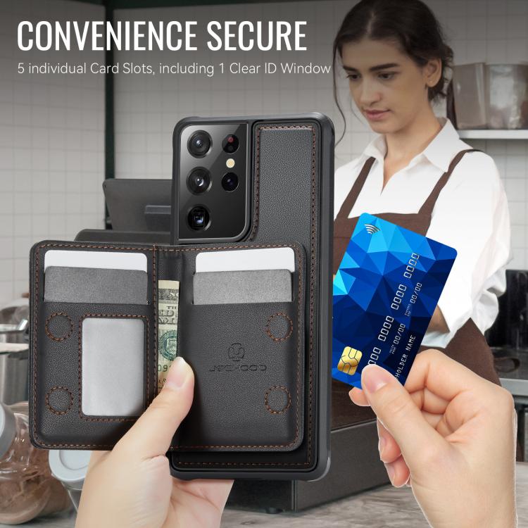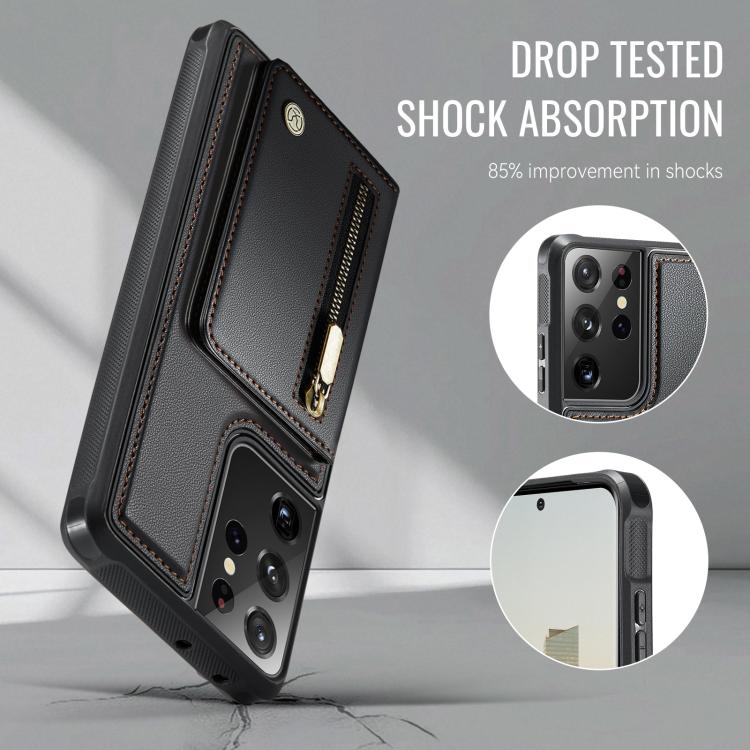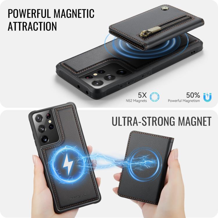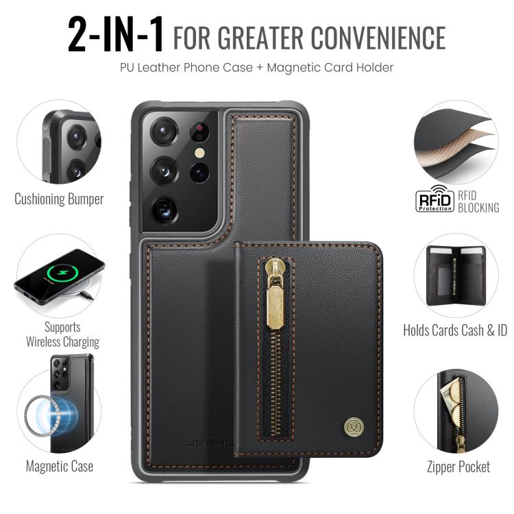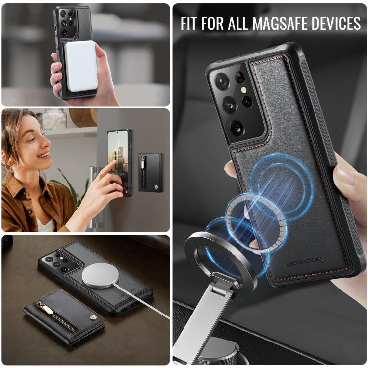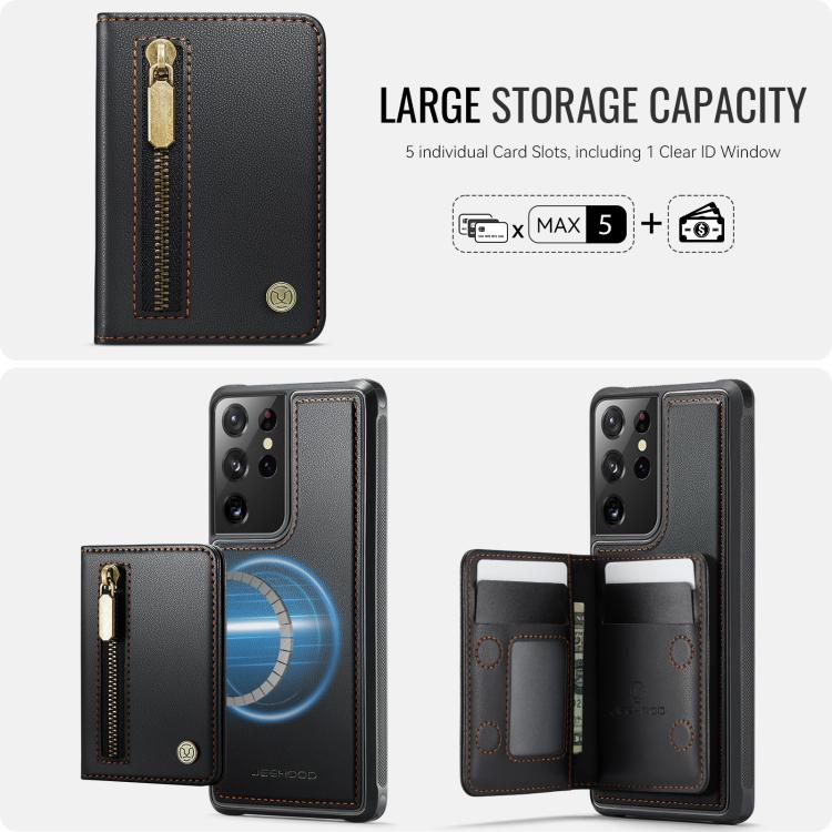 For Samsung Galaxy S21 Ultra 5G JEEHOOD J12 Exquisite RFID MagSafe Zipper Card Bag Phone Case(Black)