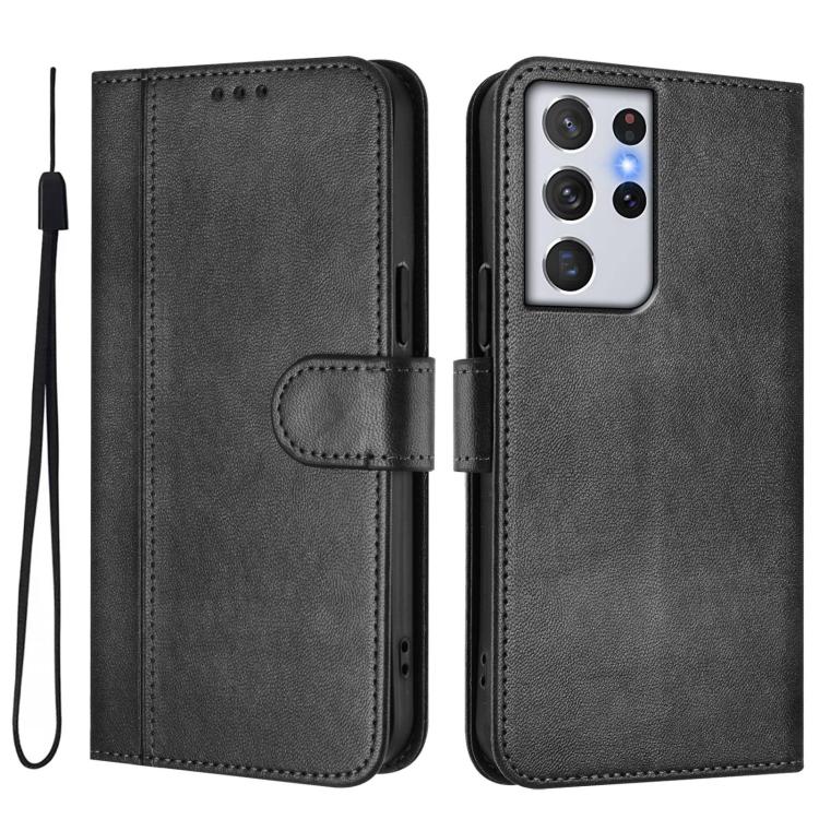 For Samsung Galaxy S21 Ultra 5G Line Splicing Buckle Retro Leather Phone Case(Black)