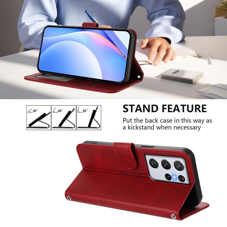 For Samsung Galaxy S21 Ultra 5G Litter Panda Embossing RFID Leather Phone Case with Lanyard(Wine Red)