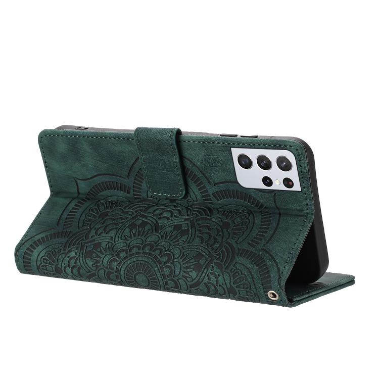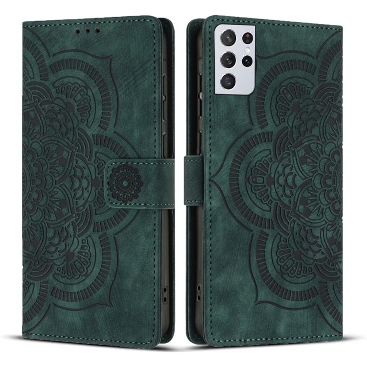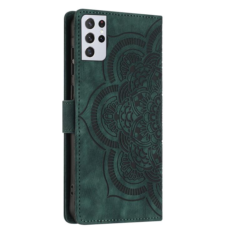 For Samsung Galaxy S21 Ultra 5G Mandala Embossed Retro Frosted Leather Phone Case(Green)