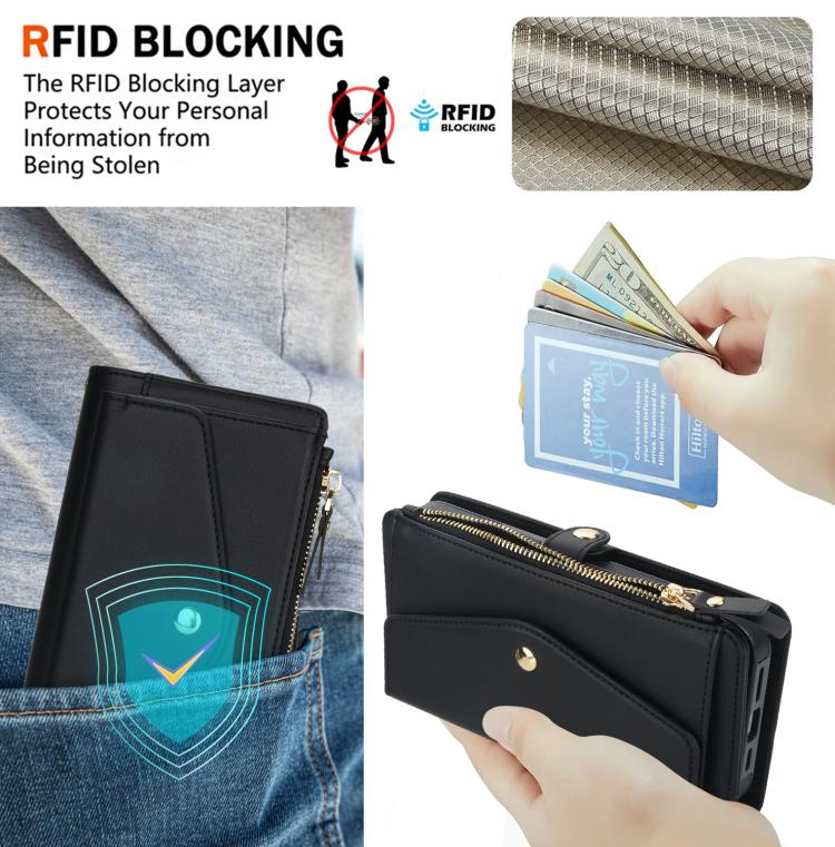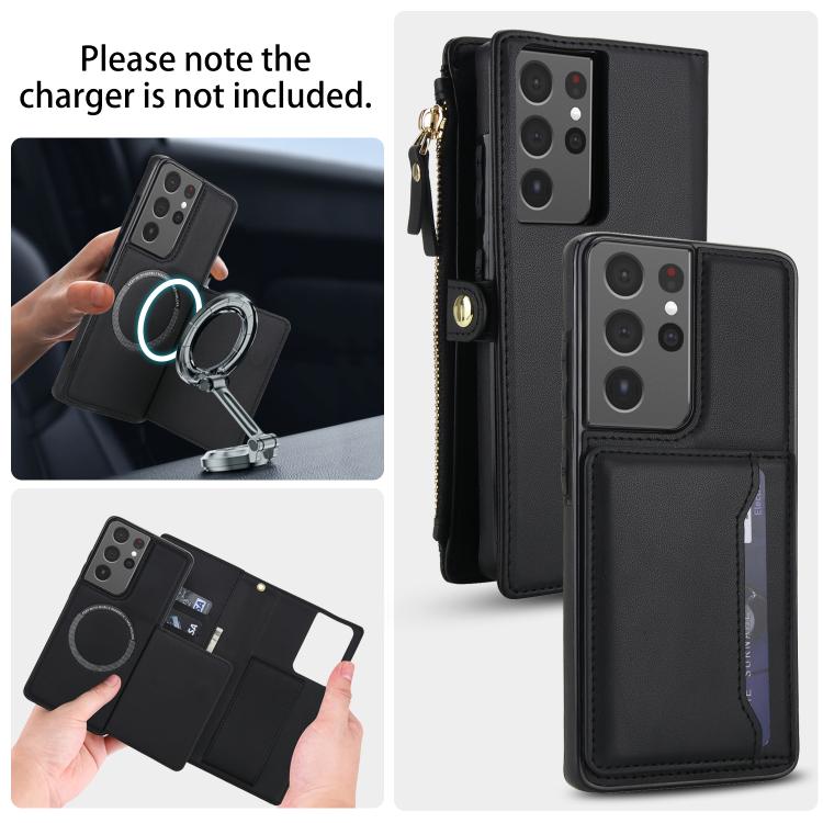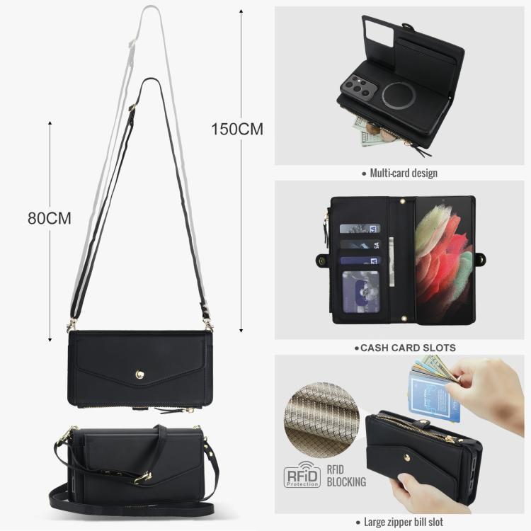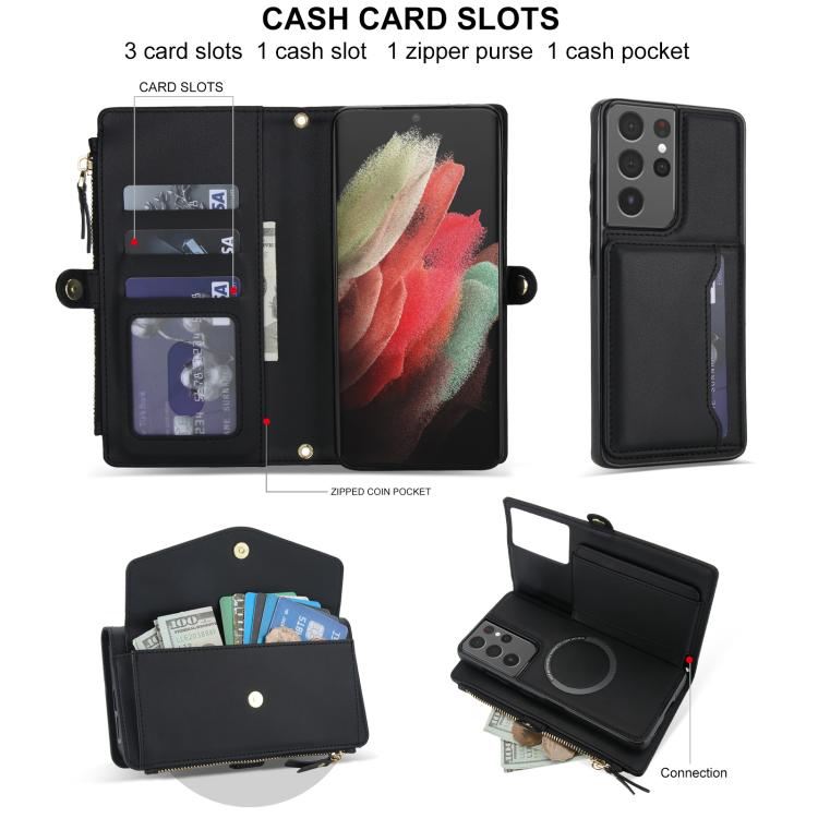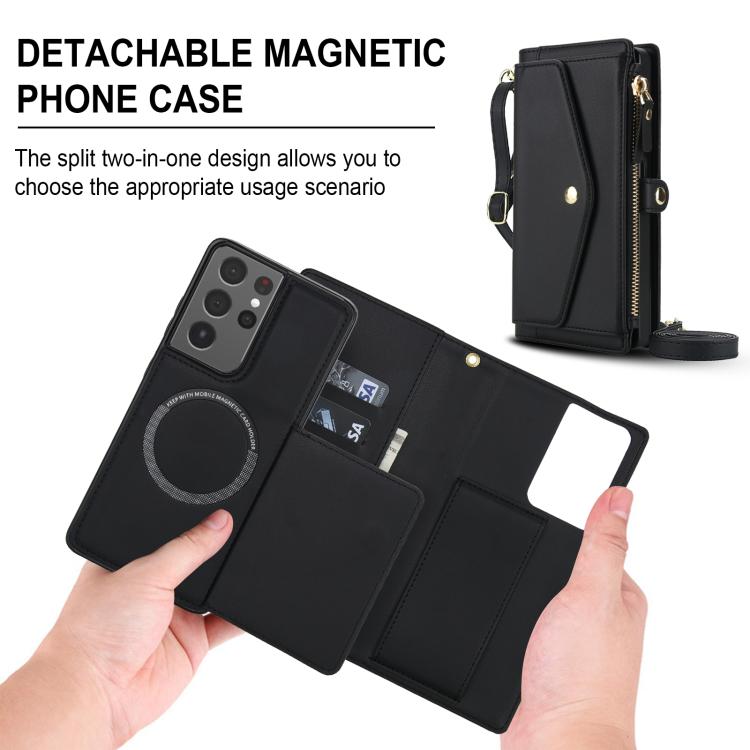 For Samsung Galaxy S21 Ultra 5G Multifunctional Wallet Detachable Leather Phone Case with Lanyard(Black)