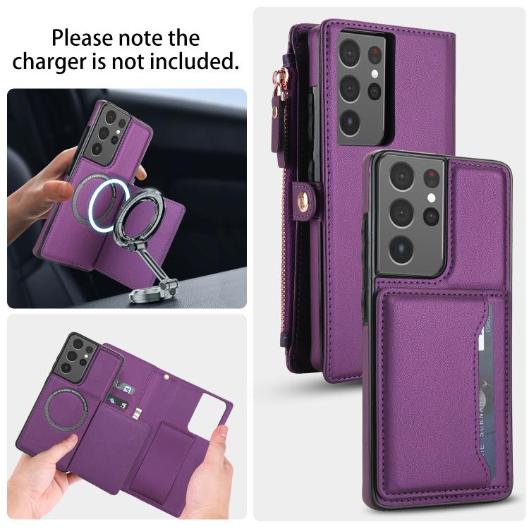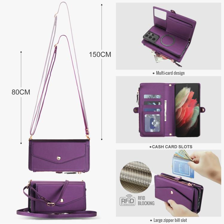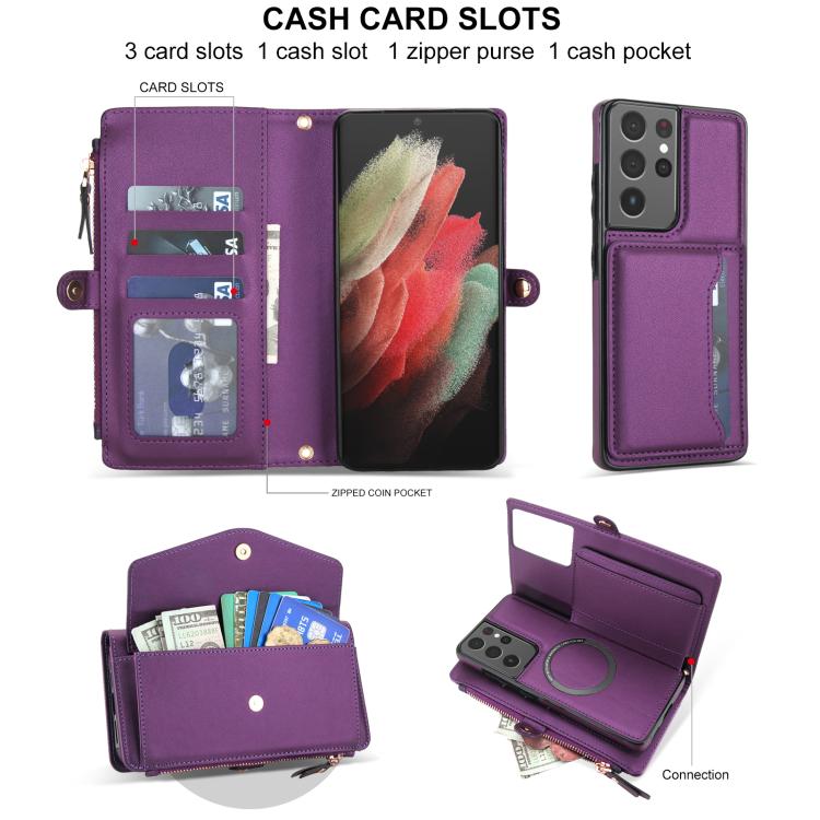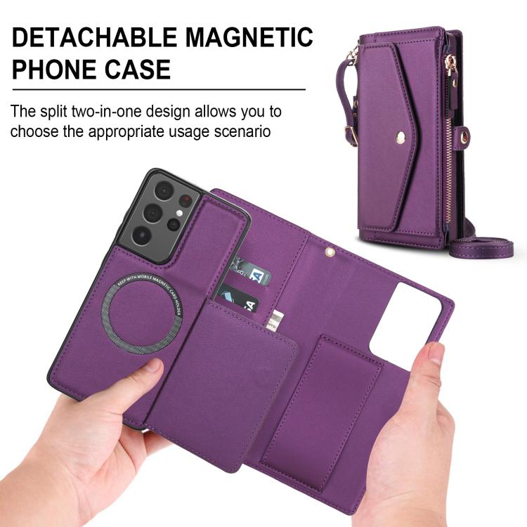 For Samsung Galaxy S21 Ultra 5G Multifunctional Wallet Detachable Leather Phone Case with Lanyard(Dark Purple)