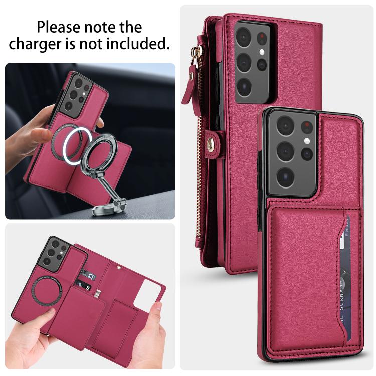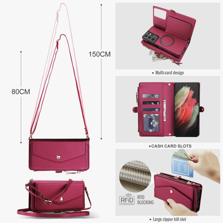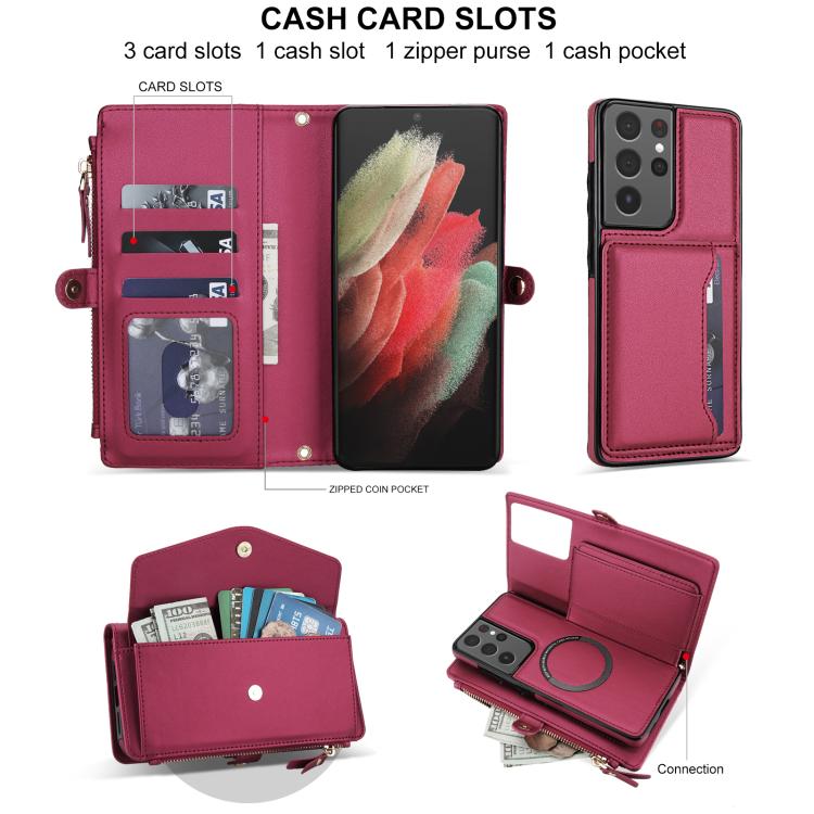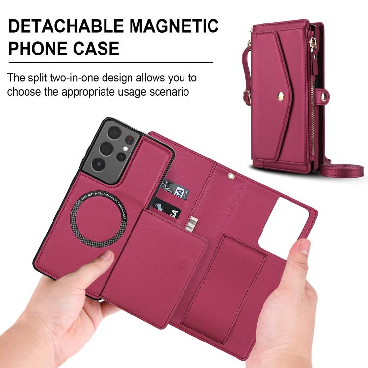 For Samsung Galaxy S21 Ultra 5G Multifunctional Wallet Detachable Leather Phone Case with Lanyard(Red)