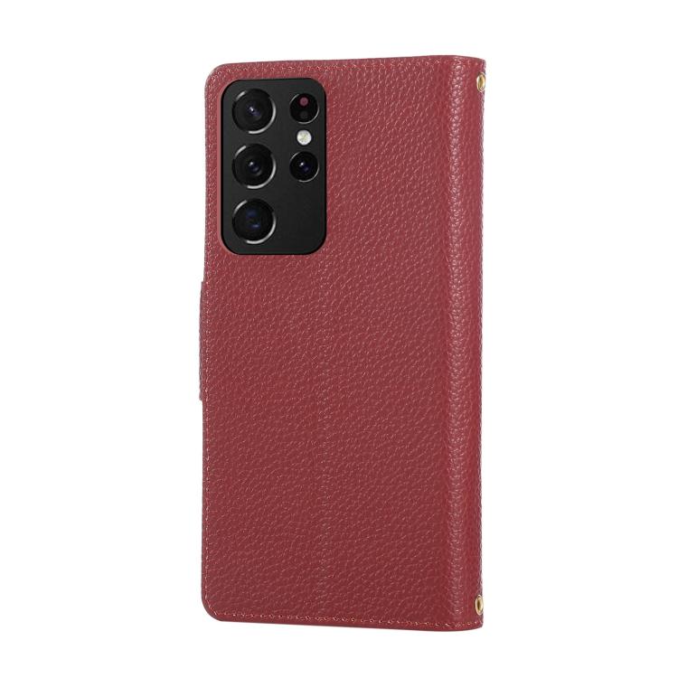 For Samsung Galaxy S21 Ultra 5G Round Buckle Zipper Wallet Leather Phone Case with Crossbody Strap(Red)