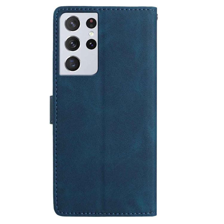For Samsung Galaxy S21 Ultra 5G Skin Feel Embossed Feather Leather Phone Case(Dark Blue)