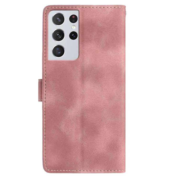 For Samsung Galaxy S21 Ultra 5G Skin Feel Embossed Feather Leather Phone Case(Pink)