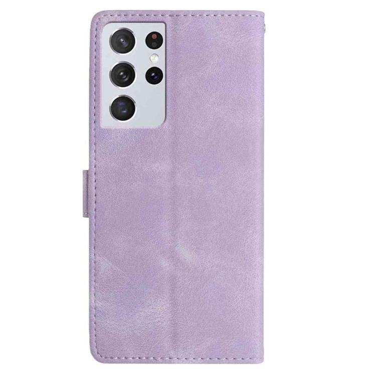 For Samsung Galaxy S21 Ultra 5G Skin Feel Embossed Feather Leather Phone Case(Purple)