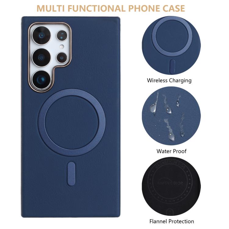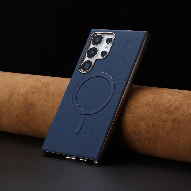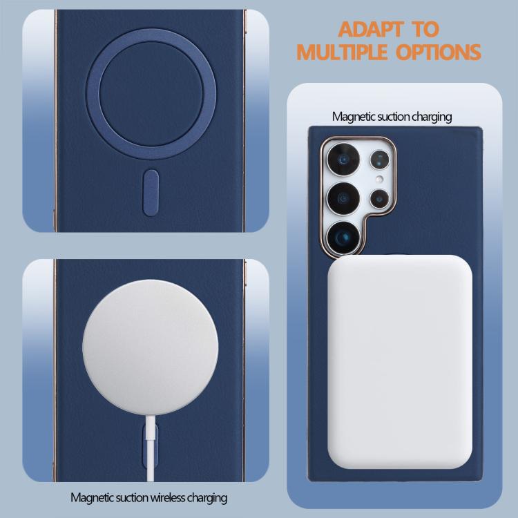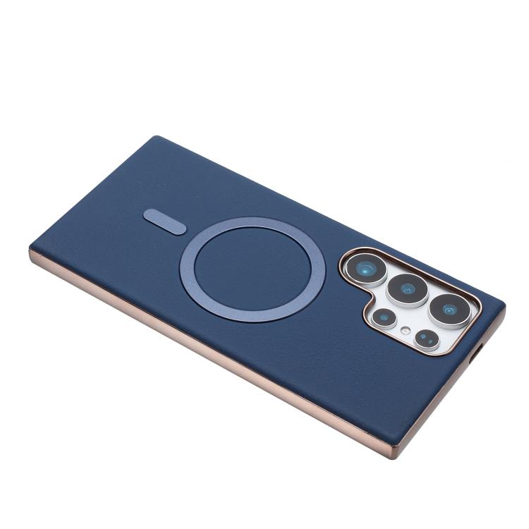 For Samsung Galaxy S21 Ultra 5G Solid Color Plating MagSafe Full Coverage Phone Case(Dark Blue)