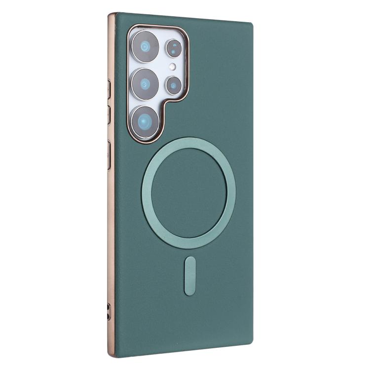For Samsung Galaxy S21 Ultra 5G Solid Color Plating MagSafe Full Coverage Phone Case(Green)