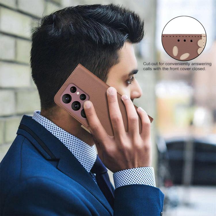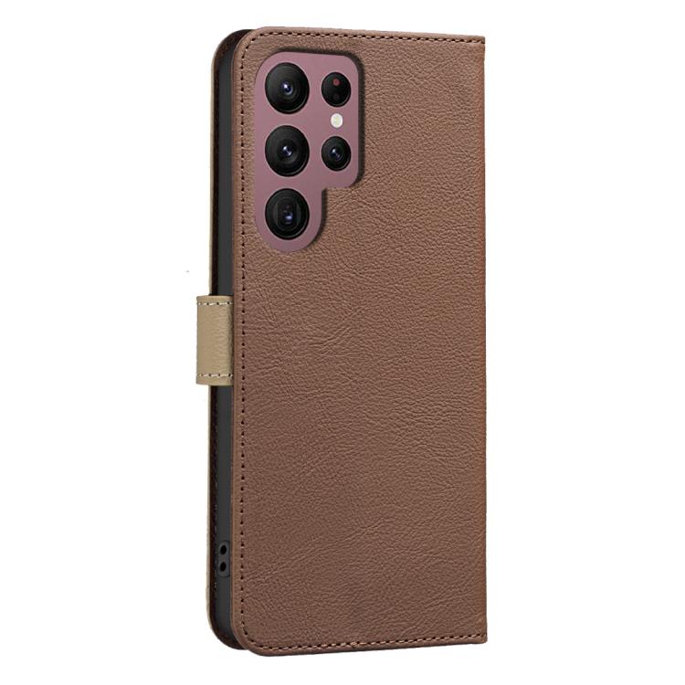 For Samsung Galaxy S21 Ultra 5G Splicing Color Hollow Flower Pattern RFID Leather Phone Case(Brown)