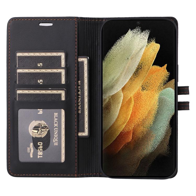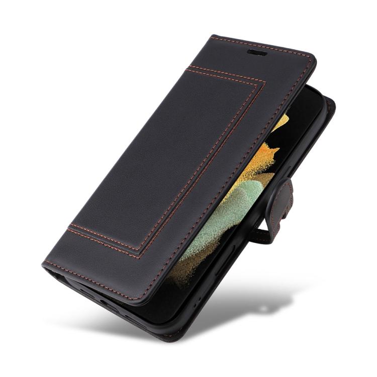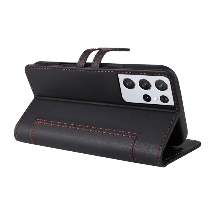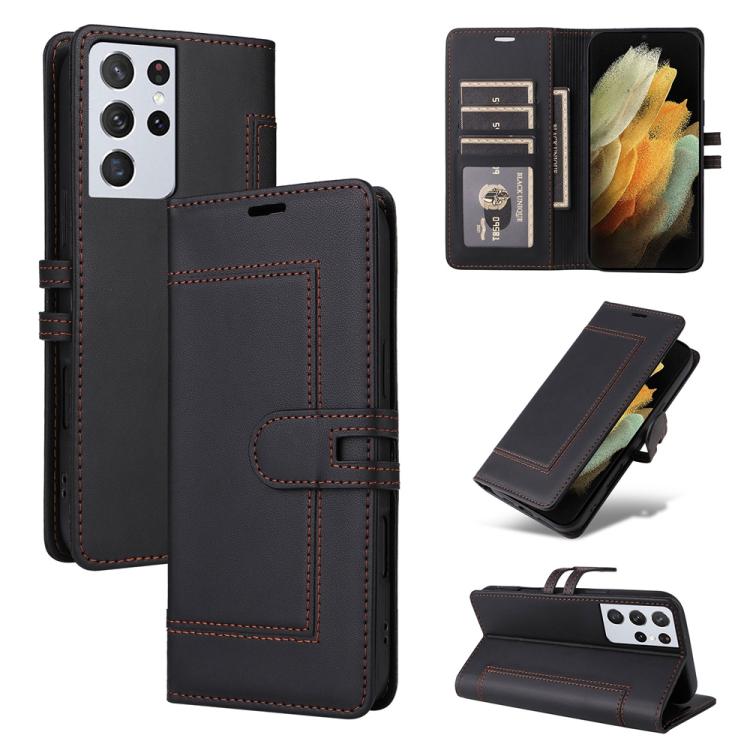 For Samsung Galaxy S21 Ultra 5G Stitched Magnetic Buckle Leather Phone Case(Black)
