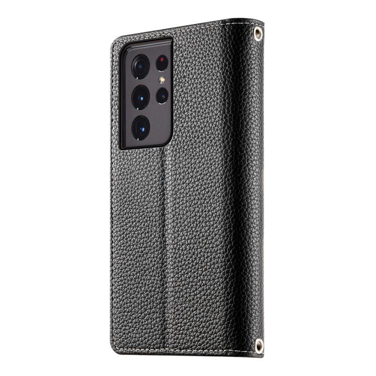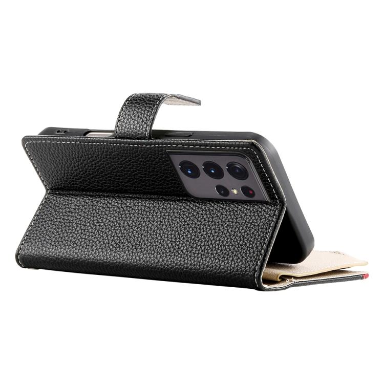 For Samsung Galaxy S21 Ultra 5G Stitching Multi-card Zipper Wallet Leather Phone Case with Short Strap(Black)