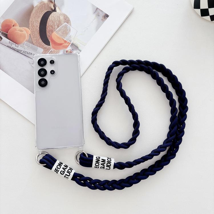 For Samsung Galaxy S21 Ultra 5G Transparent Acrylic Shockproof Phone Case with Crossbody Lanyard(Blue)