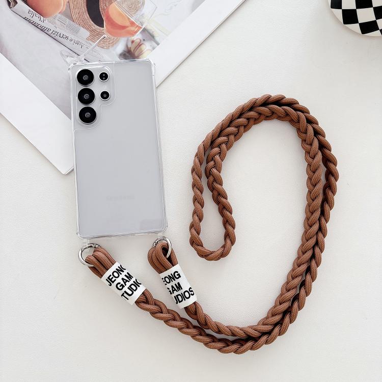 For Samsung Galaxy S21 Ultra 5G Transparent Acrylic Shockproof Phone Case with Crossbody Lanyard(Brown)
