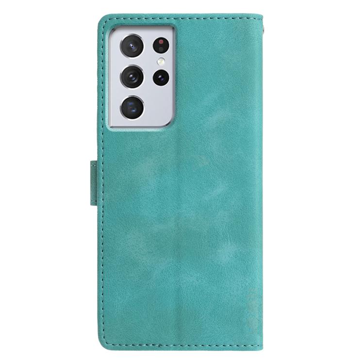 For Samsung Galaxy S21 Ultra 5G Triangles Embossed Leather Phone Case(Green)